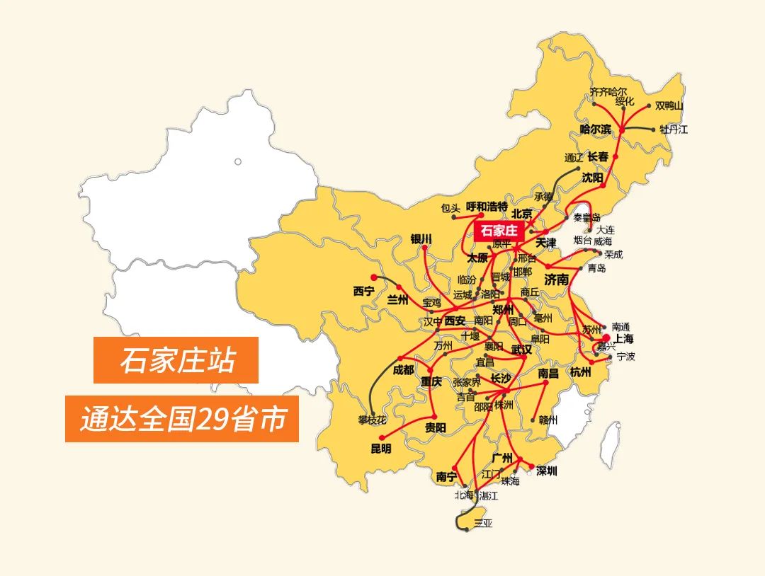 老站新線,咽喉要道,石家莊站同時(shí)引進(jìn)京廣高速鐵路和京廣普速鐵路,對石家莊城市的鐵路發(fā)展道路起到無可比擬的推動(dòng)作用。這座河北省最繁忙的車站,在區(qū)域協(xié)同發(fā)展的利好趨勢下,京津冀鐵路網(wǎng)絡(luò)交通樞紐地位愈發(fā)顯著,四通八達(dá)的鐵路網(wǎng)將石家莊與周邊區(qū)域緊密相連,群眾乘坐高鐵出行當(dāng)天即可到達(dá)全國各地主要城市,石家莊的“高鐵朋友圈”正在不斷發(fā)展壯大。