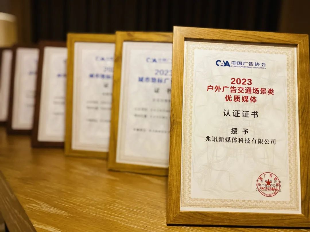 會議期間,2023年度“戶外廣告優(yōu)質(zhì)媒體”、“城市地標(biāo)廣告媒體”、“益世紀(jì)錄(2023)中國戶外廣告之最”評選榜單重磅揭曉。兆訊傳媒憑借行業(yè)領(lǐng)先的媒體資源優(yōu)勢,榮攬“城市地標(biāo)廣告媒體”(廣州、太原、貴陽、成都、重慶、北京六地)、“中國戶外廣告之最:全國高鐵站核心候車區(qū)數(shù)字媒體數(shù)量最多”、“戶外廣告交通場景類優(yōu)質(zhì)媒體”三類獎項(xiàng)認(rèn)證。