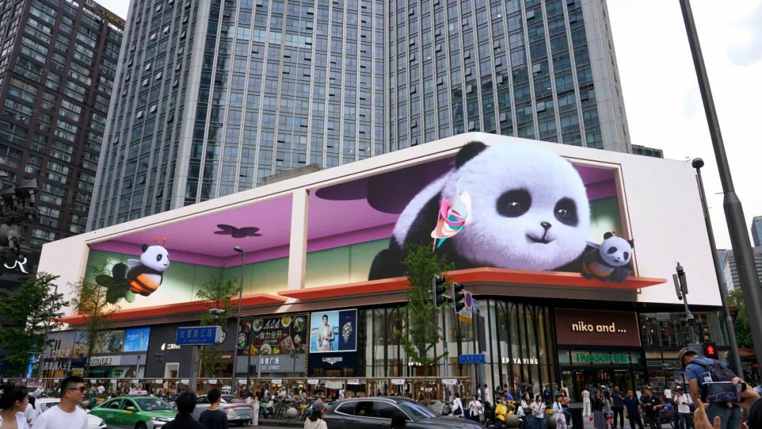 《貓貓蟲(chóng)》以國(guó)寶大熊貓為主題,通過(guò)數(shù)字藝術(shù)創(chuàng)意對(duì)熊貓的形象進(jìn)行了特別的設(shè)計(jì),將“熊貓”與“小蜜蜂”結(jié)合,創(chuàng)造獨(dú)特的“貓貓蟲(chóng)”個(gè)性化卡通形象,為觀眾營(yíng)造出如臨其境的時(shí)空觀感。兆訊通過(guò)出色的創(chuàng)意設(shè)計(jì)表達(dá),應(yīng)用前沿的AIGC圖像技術(shù)、5G、AR和光影等數(shù)字技術(shù),完成內(nèi)容出圈的同時(shí),賦能全新戶(hù)外體驗(yàn)。