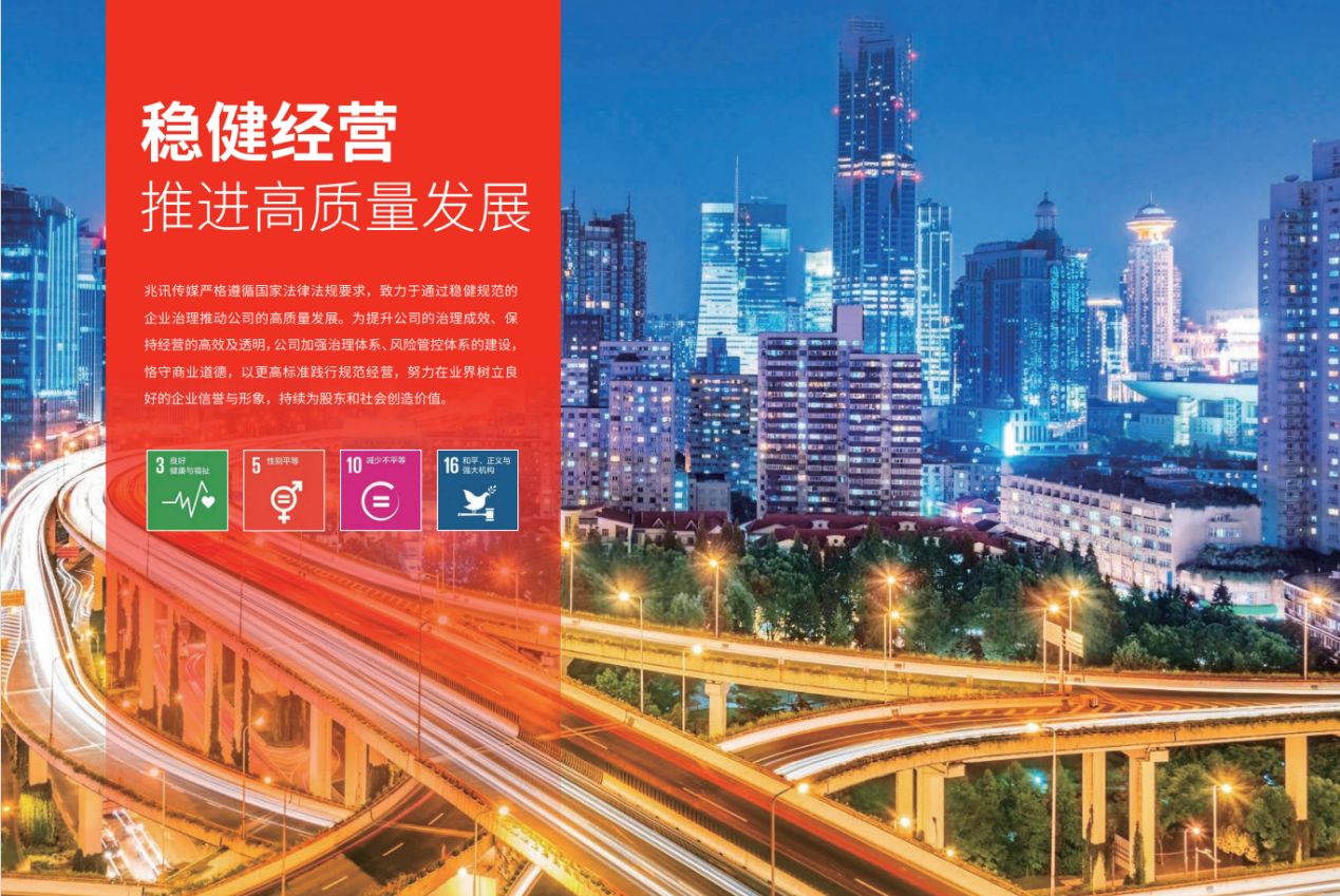 隨著全球對氣候變化和可持續(xù)發(fā)展的日益重視,ESG理念已成為社會經(jīng)濟加速綠色轉型期內(nèi),衡量企業(yè)長期價值的重要指標。兆訊傳媒(301102.SZ)積極順應全球趨勢,于2025年4月23日首次發(fā)布《兆訊傳媒廣告股份有限公司2024年可持續(xù)發(fā)展報告》(ESG報告),對兆訊傳媒在產(chǎn)品創(chuàng)新、社會責任踐行、環(huán)境保護舉措及完善公司治理等方面不懈探索與成就進行全面展示。公司高度重視公司的可持續(xù)發(fā)展管理,堅定推進ESG理念在企業(yè)運營中的落實,為奠定良好的企業(yè)發(fā)展基礎,尋求創(chuàng)造經(jīng)濟與環(huán)境、社會效益相協(xié)調的長期價值,樹立行業(yè)可持續(xù)發(fā)展的典范。