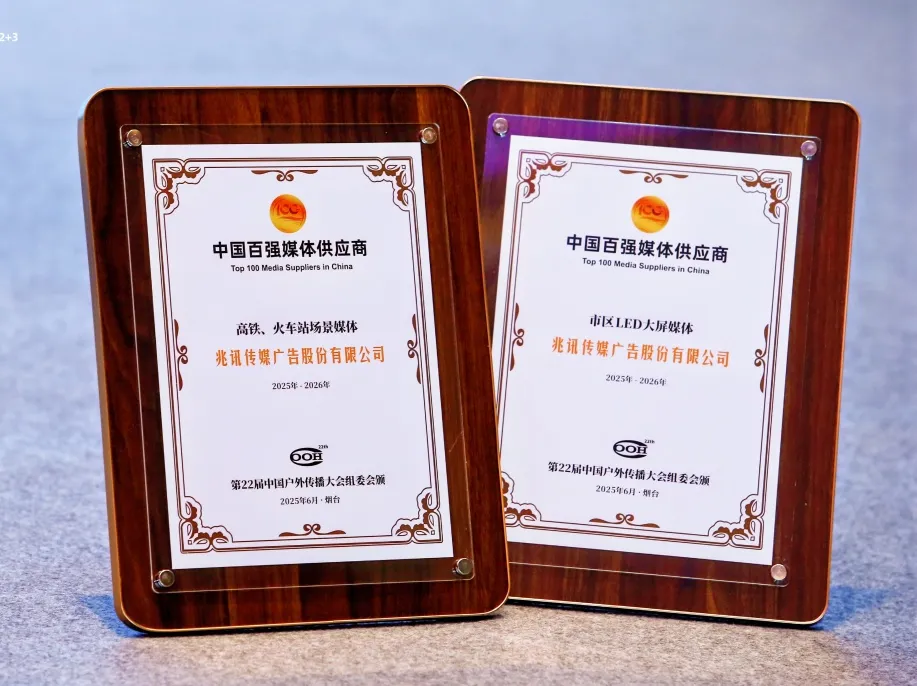 憑借高鐵和商圈兩大媒體資源硬核實(shí)力,兆訊傳媒榮登2024-2025年度第十屆“中國(guó)百?gòu)?qiáng)媒體供應(yīng)商”、“中國(guó)杰出戶外媒體公司”榜單,彰顯出兆訊在高鐵數(shù)字營(yíng)銷領(lǐng)域的超一流水準(zhǔn)和聚合媒體商業(yè)價(jià)值。