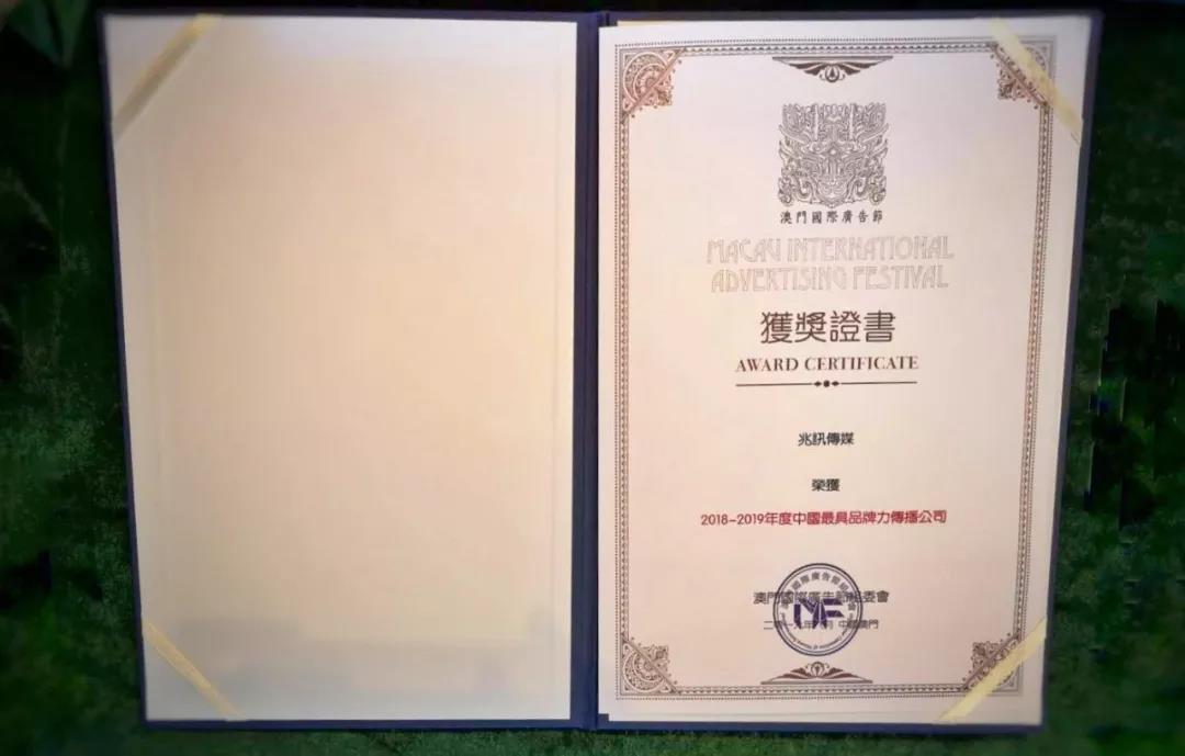 6月5日, 2019澳門國(guó)際廣告節(jié)在澳門科學(xué)館舉行,本次廣告節(jié)由澳門廣告商會(huì)、澳門國(guó)際廣告節(jié)組委會(huì)主辦。兆訊傳媒在本屆的澳門國(guó)際廣告節(jié)上獲得了“2018-2019年度最具品牌力傳播公司”大獎(jiǎng)。
